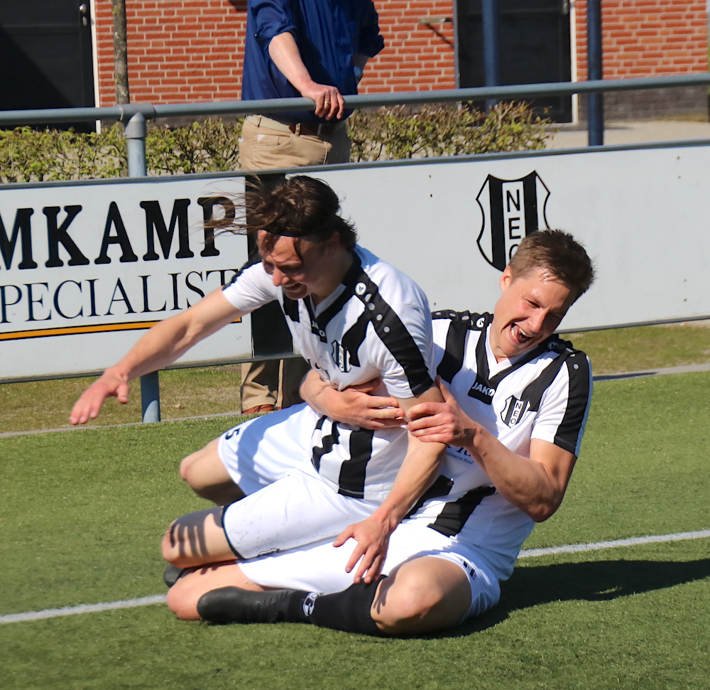 Halvveis i første omgang sto det fortjente 1-0. Ron Spoler ga inntrykk av at han spilte ballen på rykende Wessel Bom, men serverte til slutt Rick ten Tusscher, som med stor sensasjon sendte ballen til høyre hjørne: 1-0. Etter det målet, noen flere NEO-sjanser: Max Brunninkhuis sitt høye skudd og fine spill fra Mats Velner ville ha tjent et mål, men igjen fløy ballen like utenfor. Kort tid etter hadde Job Heerink en sjanse igjen etter en kontring fra Lemelerveld. Heldigvis skjøt den høye forwarden utenfor.